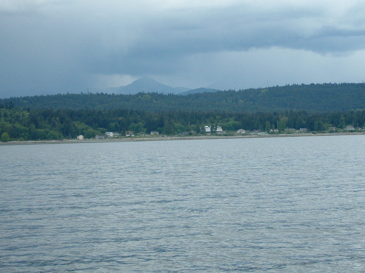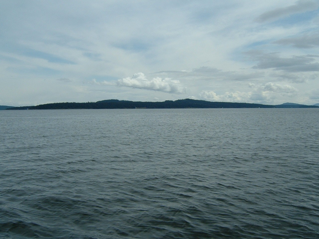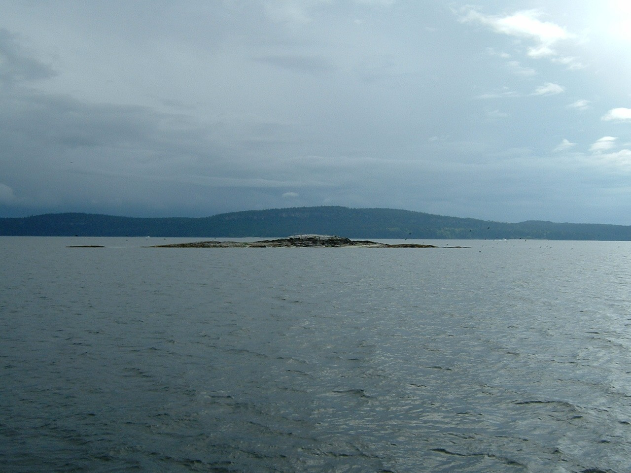 Mexicana Hill on Valdez Island, viewed over Miami Islet. Again, the chart shows the peak of the hill as a dot, but in real life, Mexicana is just a low broad mound. A look at the contour lines on the chart should lead us to suspect this.