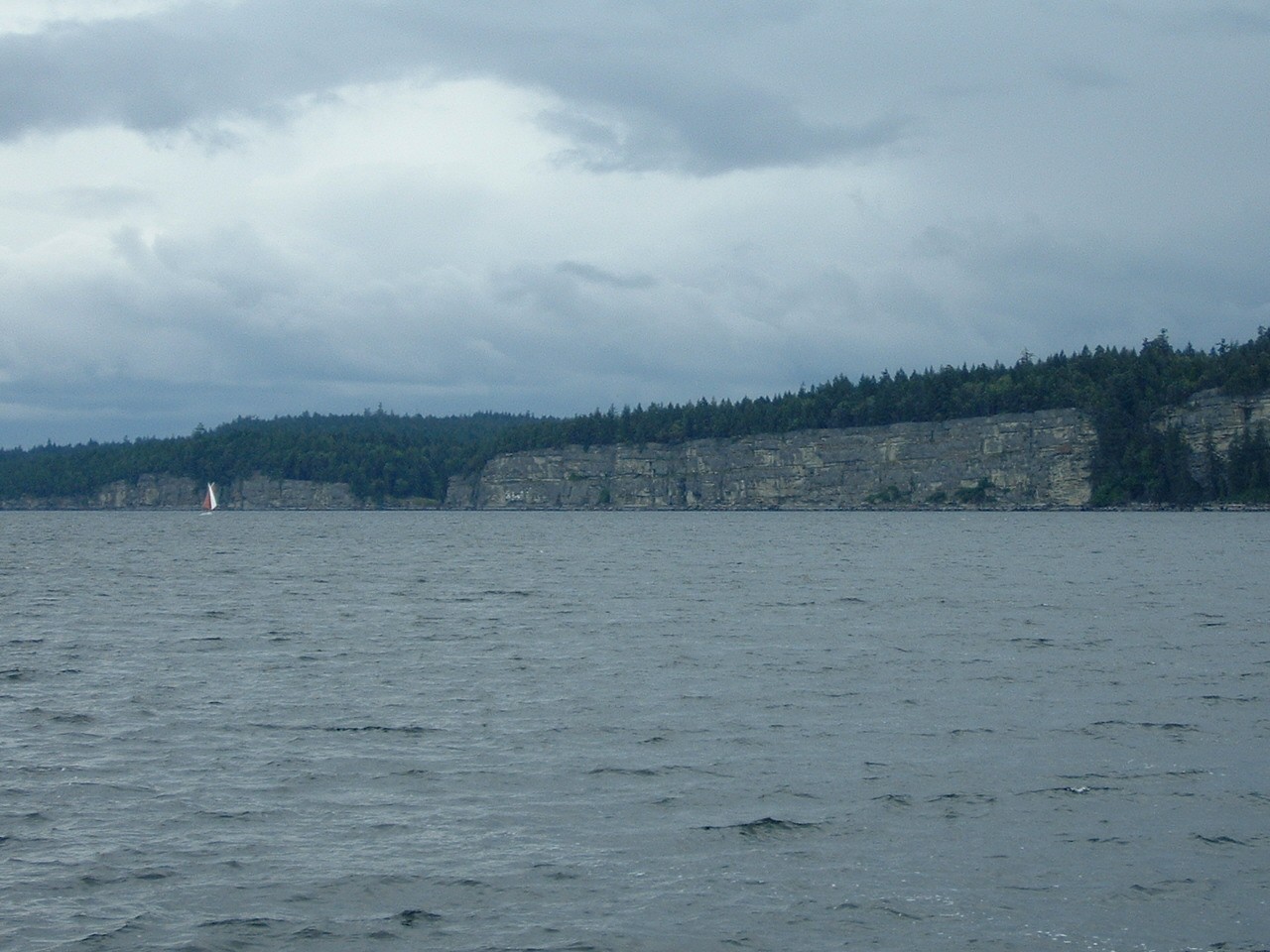 Looking west into Kulleet Bay. The land around the bay is an indian reserve. There are no facilities for small craft.